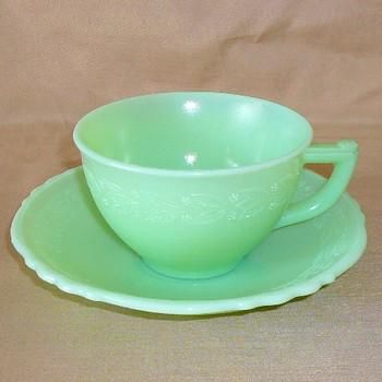 カップとソーサーに、ローレル(月桂樹)のエンボス模様があります